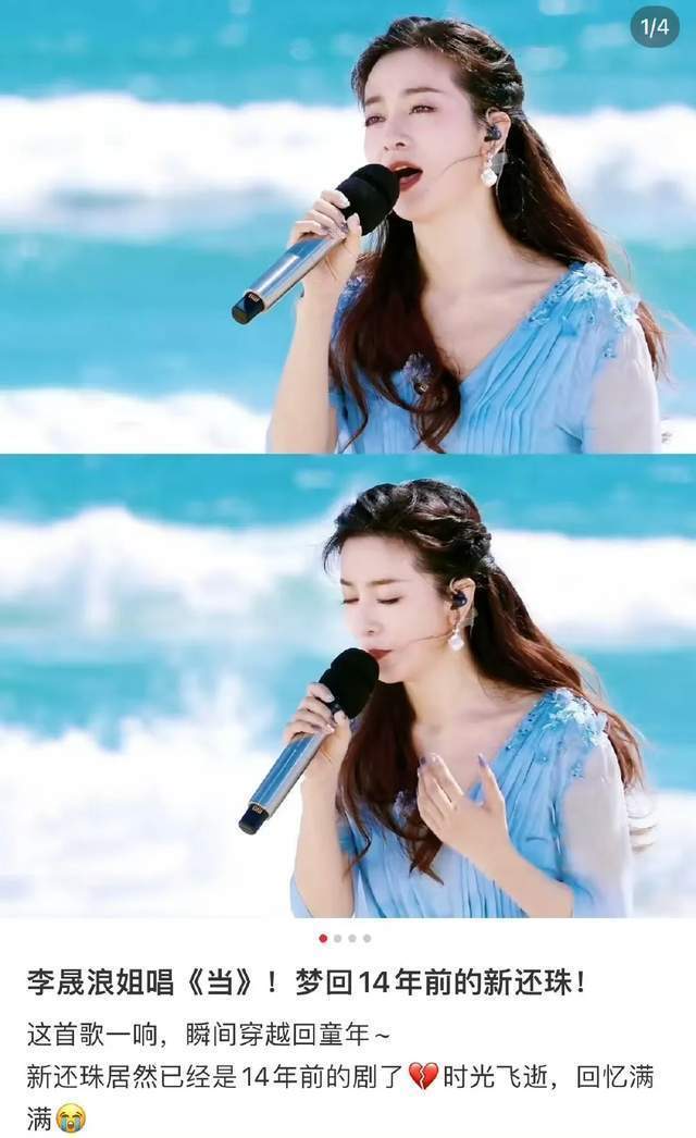 李晟的初舞台是在她最爱的海边,乘着风浪唱了《新还珠格格》中的主题曲,那首琼瑶经典曲目《当》,熟悉的歌曲一出来,瞬间带动很多观众的记忆点,甚至还引发了全场大合唱效果很好。